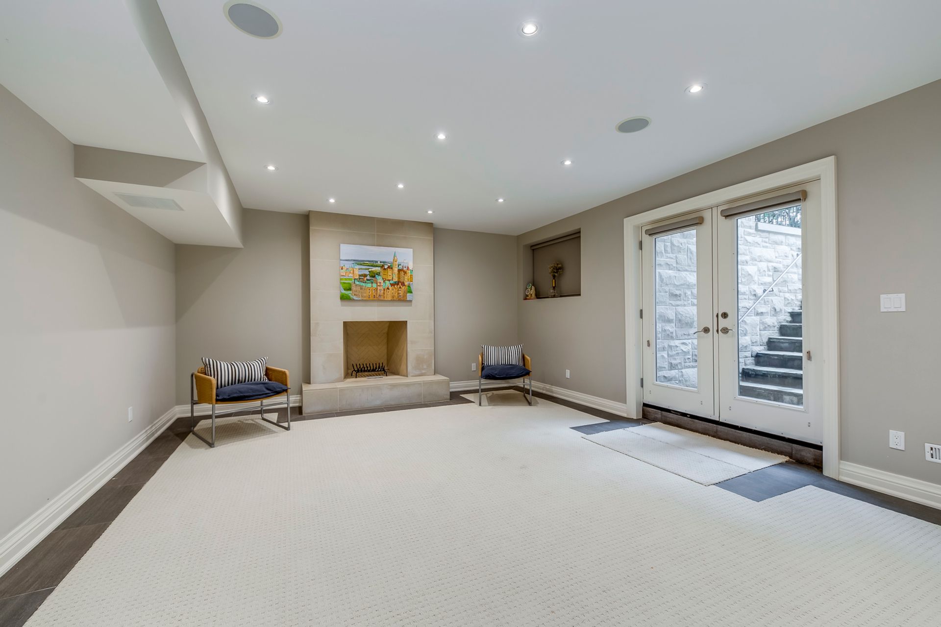 Beautifully Finished Walk-up Basement with Ample Oversized Windows Boasts Open Concept Games Room & Rec Room with Fireplace & Walk-Out, Plus Exercise Room (or Potential 5th Bedroom), Large 3pc Bath, 2nd Laundry, Cold/Wine Cellar & Ample Storage!