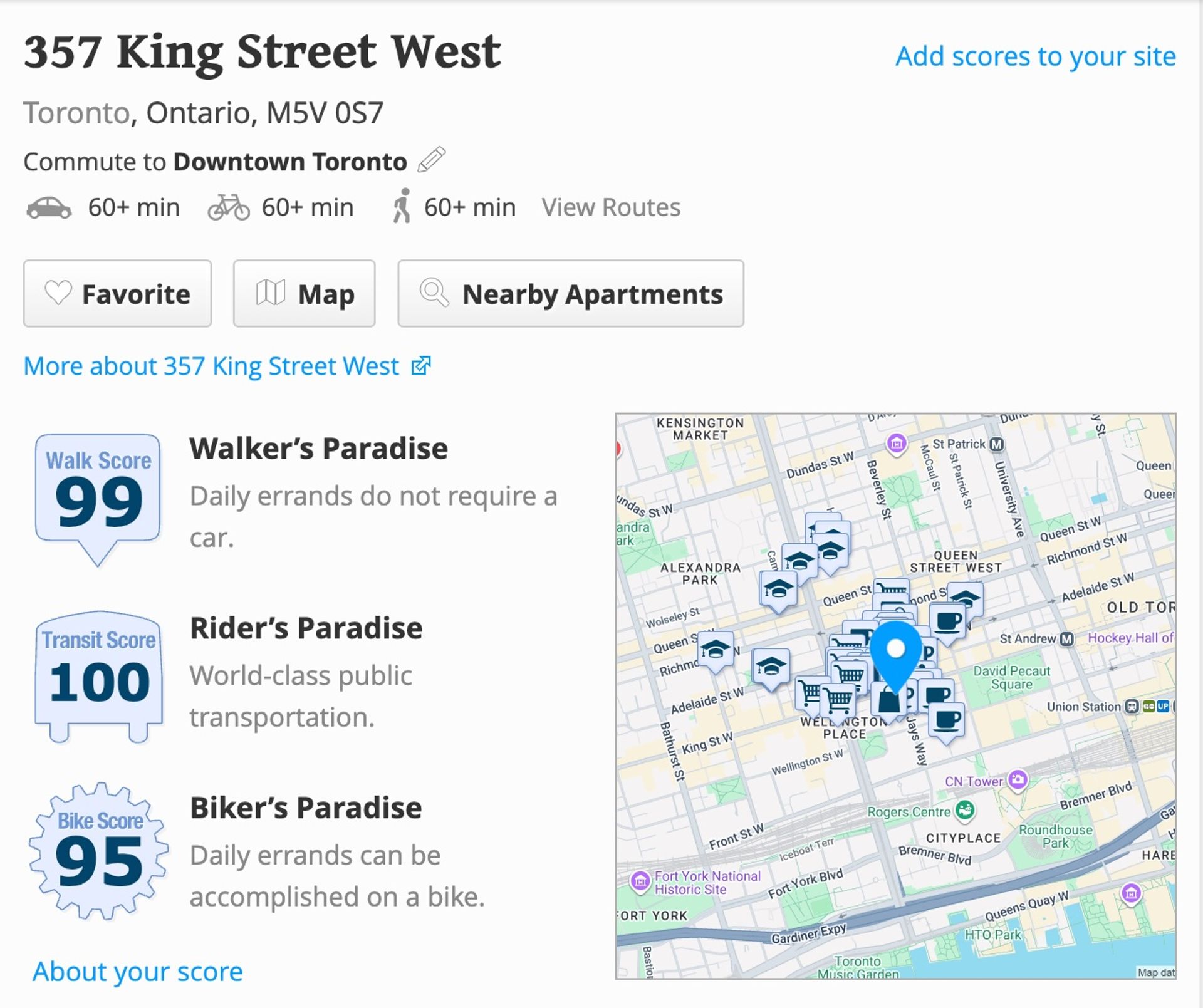 Walk/Transit/Bike Score - 201 - 357 King St.W., Toronto