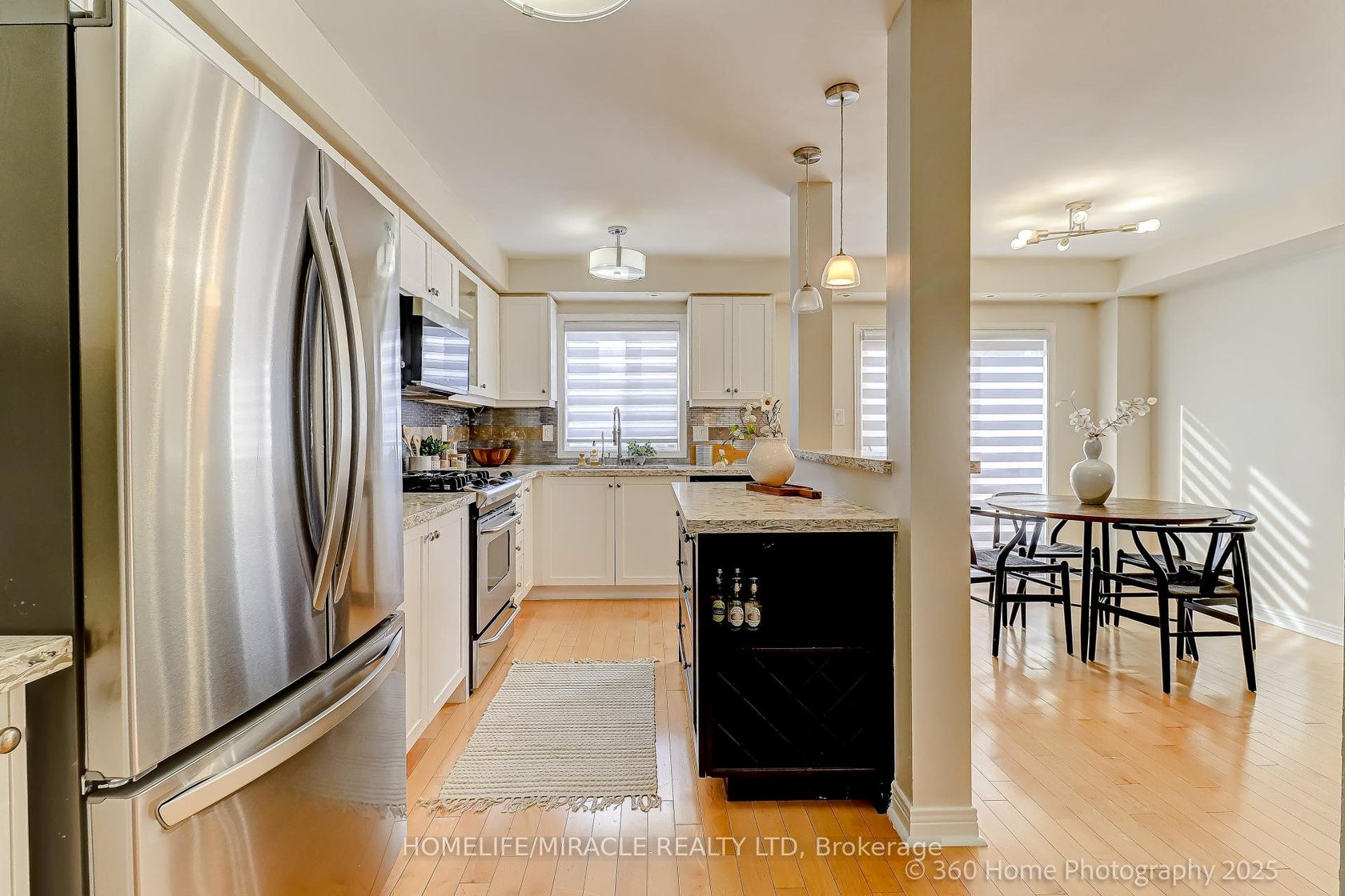 Welcome to this stunning townhome, offering the privacy and feel of a home with over 1926 sq. ft. (2400 Approximate with Basement)of beautifully designed living space. This bright and spacious home features an open-concept layout with 3+1 bedrooms and 4 Full bathrooms, perfect for families or those who love to entertain. Large windows fill every level with natural light, while gleaming hardwood floors create a warm and elegant atmosphere. The Main floor design with Family room or use as a great room also Home Office with 4 Pc Ensuite Washroom. The Second floor boasts a modern kitchen with quartz countertops, a pantry, and ample cabinet space, Living, Dining and Breakfast area ideal for both everyday living and hosting gatherings. Step out from the kitchen onto a large private deck, perfect for morning coffee or summer BBQs. A unique staircase design enhances flow and convenience throughout the home. Direct garage access is an added bonus, especially in winter, and the upper-level laundry room adds everyday practicality. The finished basement provides a versatile space with an additional bedroom or home office, plus a full bathroom perfect for guests or extended family. Or Income potential. Upstairs, the primary suite offers a private 5pc Ensuite and generous closet space, creating a relaxing retreat. Step outside to a beautifully landscaped backyard, a true highlight of this property. Whether your are a garden lover or looking for a safe play area for kids, this outdoor space blends beauty and function seamlessly. Move-in ready and meticulously maintained, this rare home combines comfort, style, and practicality in one exceptional package. Dont miss your chance to call it home!