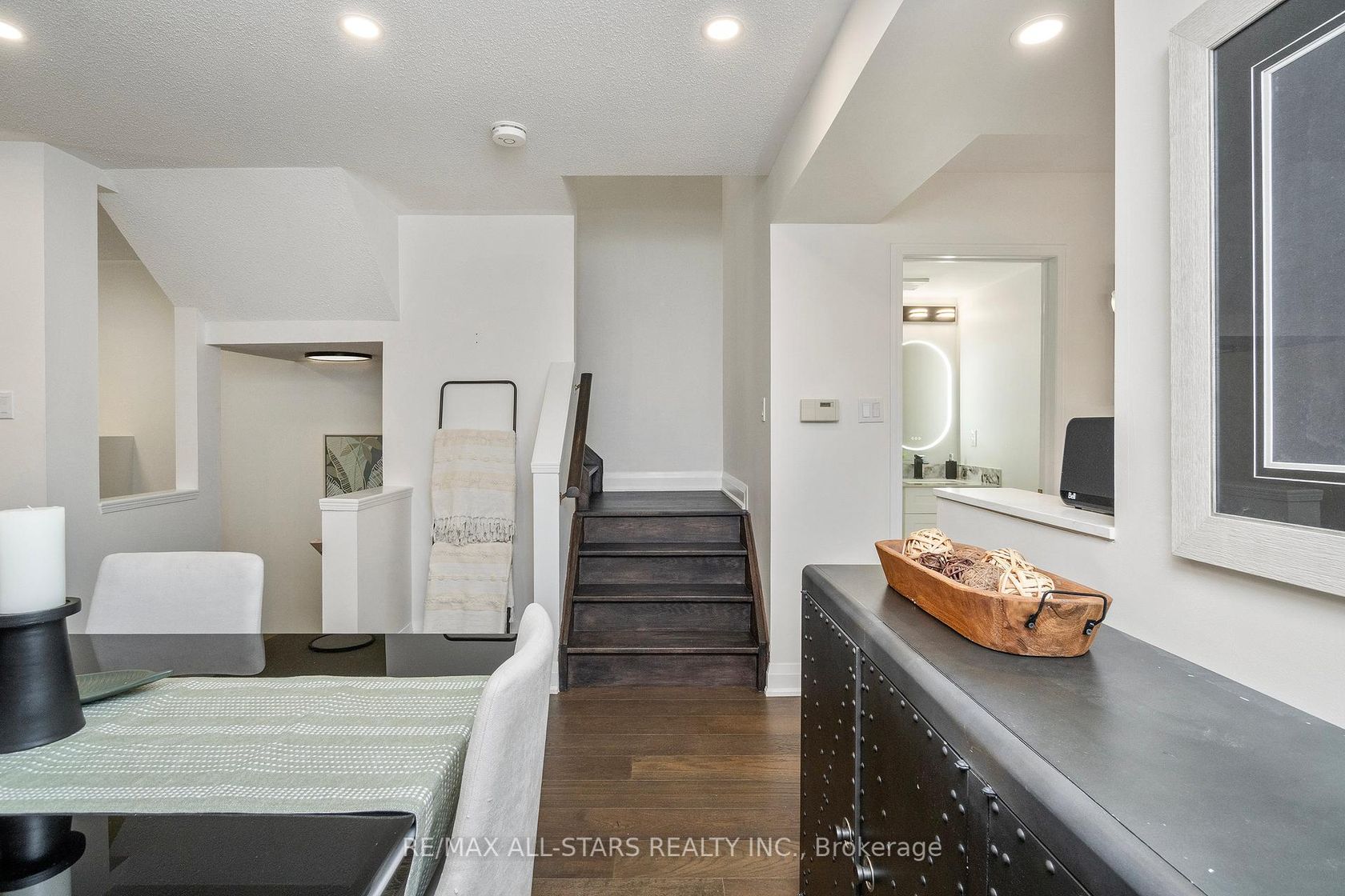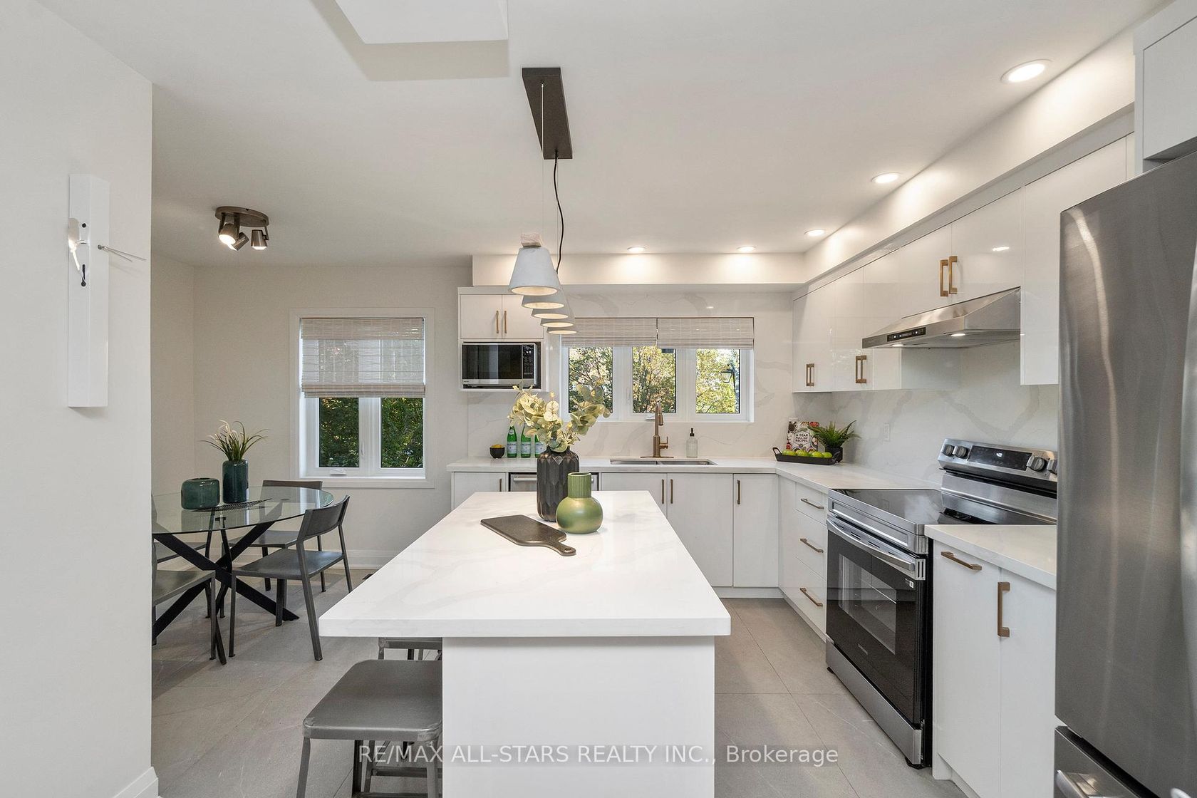Welcome to Rougehaven a hidden gem in historic Markham, where charming streets and the magnificent Rouge River ravine with its walking trails are just steps from your door, and you're in the catchment for top rated elementary & secondary schools. This 1,400 sq. ft. executive townhome has just been renovated from top to bottom and is completely move-in ready. Wide-plank laminate floors (no carpet!) run seamlessly throughout, including the stairs. The bright, white kitchen is a showstopper: quartz counters, centre island with breakfast bar, sleek backsplash, stainless steel appliances, pot lights, and an eat-in area that flows into the open-concept living and dining spaces. Perfect for entertaining or everyday living.Upstairs you'll find three spacious bedrooms. The primary suite has a walk-in closet and a beautifully renovated ensuite with walk-in shower. The other bedrooms share a renovated large bathroom. On the main level, a stylish powder room adds convenience for guests.The finished walk-out basement provides flexible space for work, play, or relaxing plus garage access, additional storage, and a second entry into the home. Updated windows, a new garage door, modern lighting, and fresh finishes complete the picture. Set in the sought-after Rougehaven community, this home combines contemporary style, a functional layout, and an unbeatable location. From here you can stroll to Main Streets shops, patios, festivals, restaurants, Milne Dam Conservation, and the Markham Public Library or hop on the 407 or Markham GO Train in minutes for an easy commute! Most windows 2024, kitchen/baths/flooring 2024, garage door '25, new gdo+remote 2025, furnace updated 2015, cac updated 2018