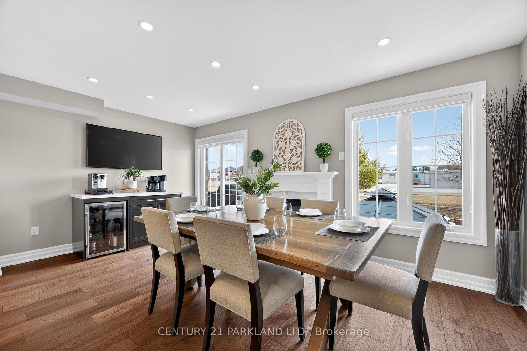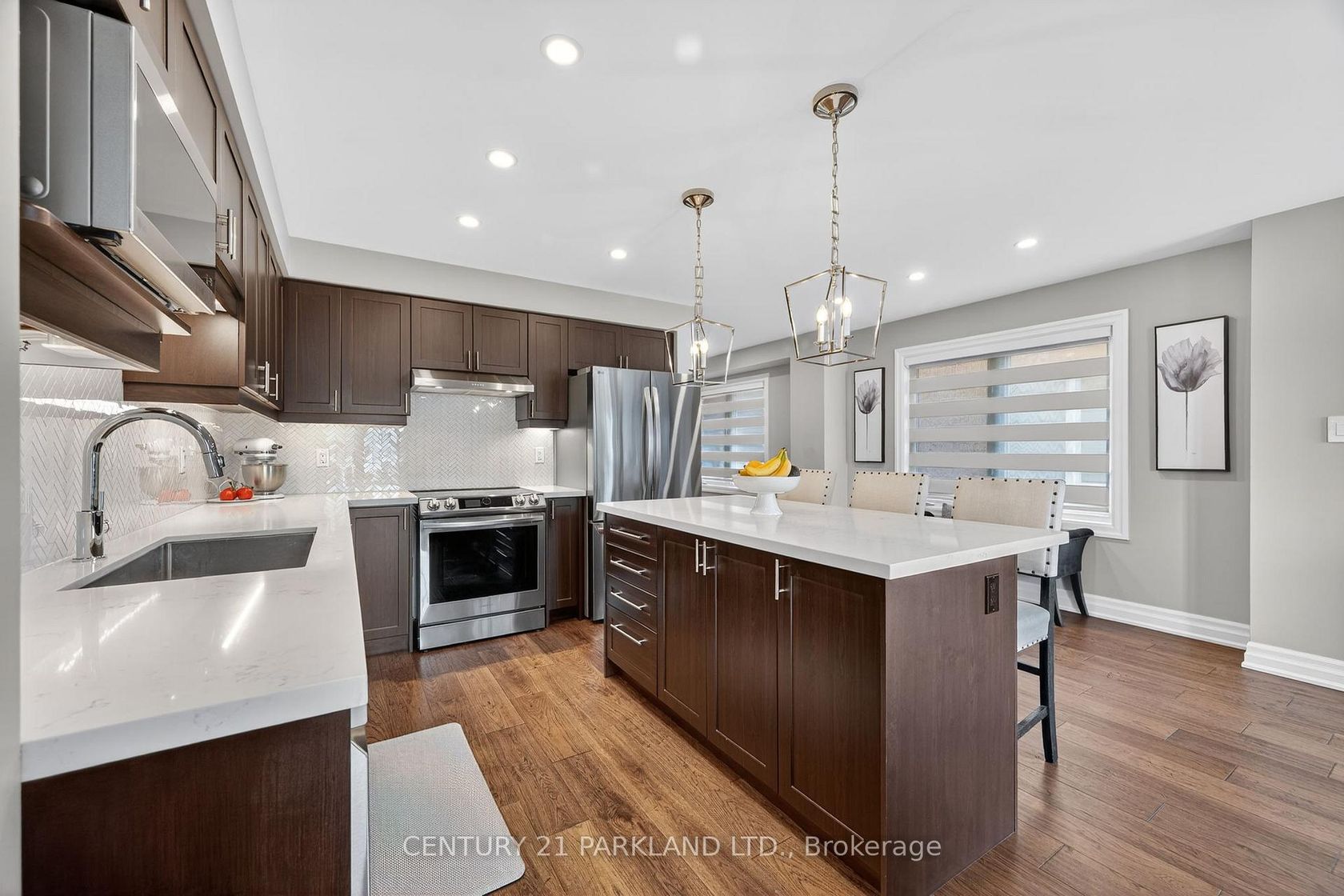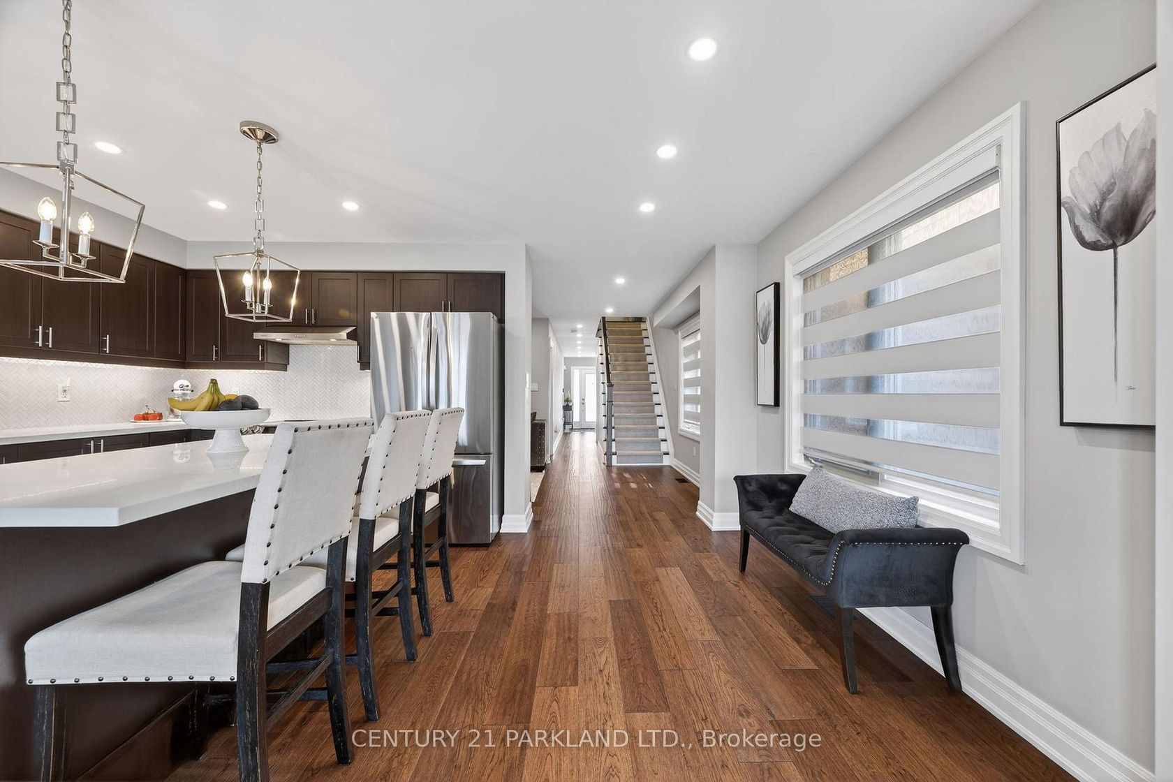 Step inside this beautifully renovated home where timeless finishes meet modern comfort. The main level showcases rich 6 3/4" engineered hardwood floors and freshly updated 5 1/2" trim that sets a welcoming tone throughout. The stylish open concept kitchen is a true highlight of the home featuring sleek quartz countertops, stainless steel appliances, a dedicated coffee bar with a built-in wine fridge, and seamless access to the backyard, making it perfect for entertaining or relaxing mornings.Upstairs, you'll find the engineered hardwood floors carrying through four carpet free bedrooms, including a stunning primary suite complete with two walk-in closets and a 4-piece ensuite. Downstairs, the newly finished basement (2025) awaits you. The basement showcases a large rec room, a den with water access (currently used as an at home salon) and another 2-pc bathroom. Outside, enjoy a fully hardscaped backyard designed for low maintenance living, complete with a charming gazebo and the added privacy of backing onto a school. This move-in-ready home blends elegance, practicality, and comfort in one exceptional package.