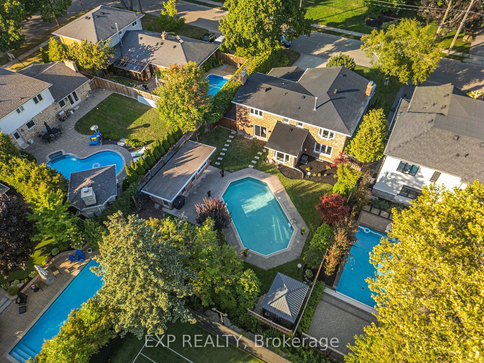 Beautifully renovated home in southeast Burlington, just steps from Lake Ontario. Nestled on a private 70 140 ft lot on Shoreacres Road, this 2-storey home offers approximately 4,200 sq ft of finished living space with 4+1 bedrooms, 3 full bathrooms, and 2 half bathrooms. The main floor features wide-plank hardwood flooring, crown moulding, and multiple gas fireplaces. The custom kitchen includes an approximately 12 ft Cambria quartz island, quartz countertops, premium cabinetry, an Electrolux fridge, and a gas cooktop. The kitchen is open to the dining, family, and living rooms, with direct access to the backyard. A laundry room, powder room, and garage entry complete this level. The second floor includes 4 spacious bedrooms and 2 full baths, including a primary suite with dual walk-in closets and a 5-piece ensuite. The finished lower level features a 5th bedroom, 3-piece bath, large recreation room with gas fireplace, and storage. The private backyard includes a heated saltwater pool, cabana with 2-piece bath, patios, and mature landscaping. Recent updates include roof shingles and flat surface replacement (2025), windows (2025), exterior and cabana painting (2025), LeafFilter gutter system (2025), garage door and opener (2025), interior painting (2025), pool pump (2023), salt cell (2022), and water filter system (2020). Located in the Tuck/Nelson school district, near Paletta Lakefront Park, Nelson Park, downtown Burlington, and major highways.