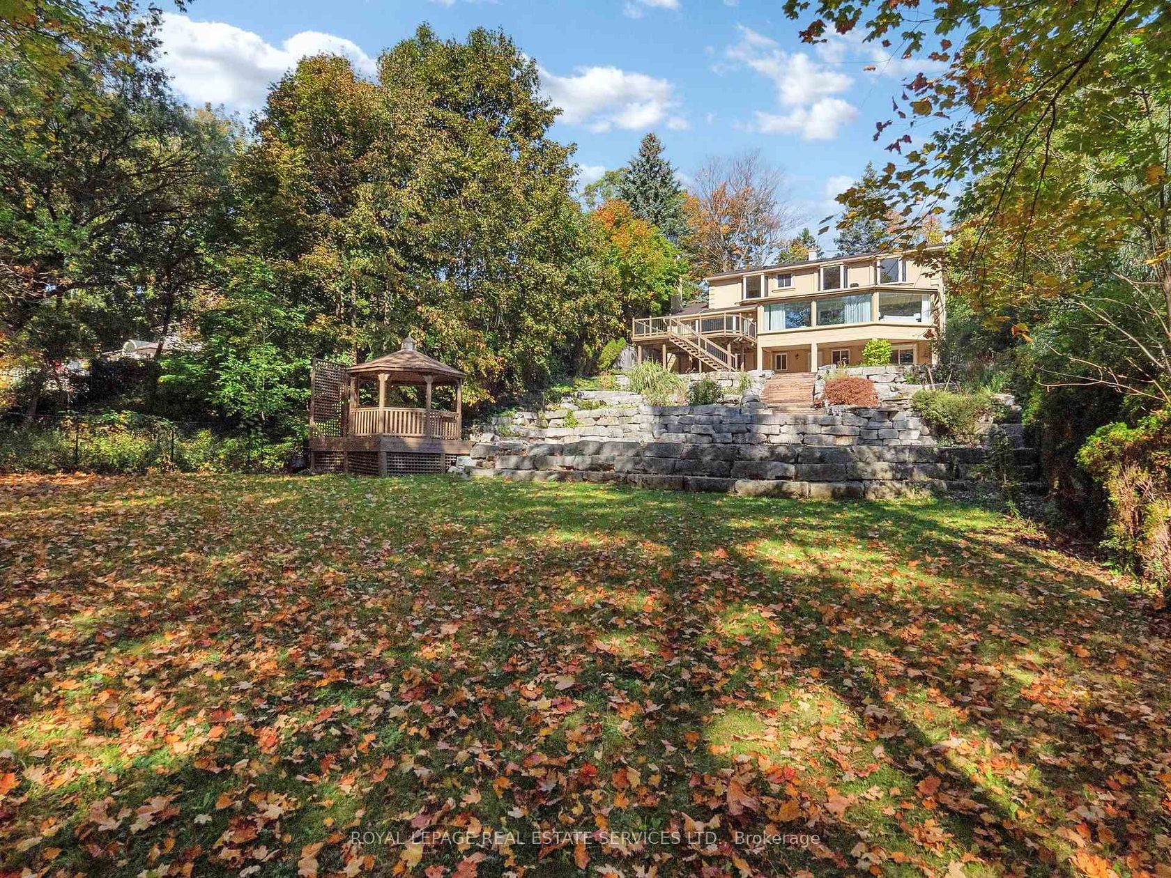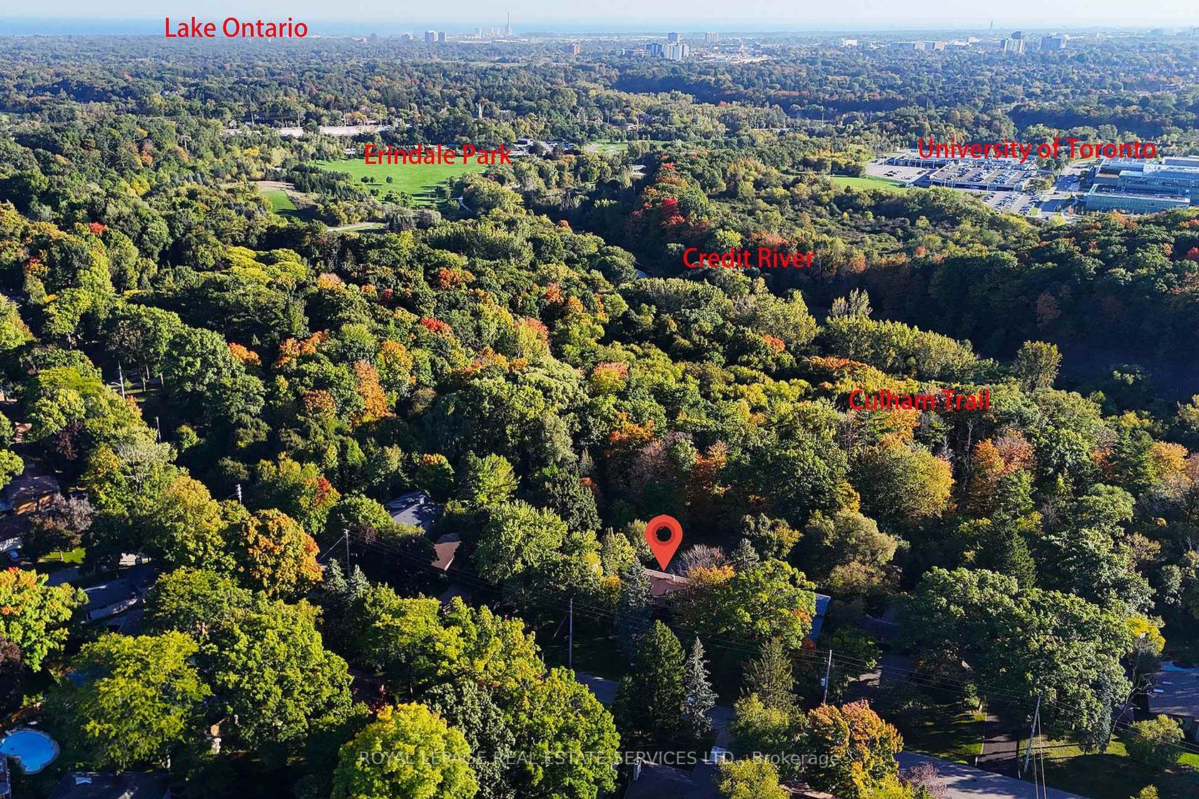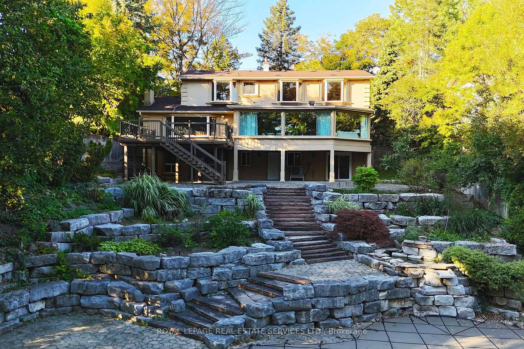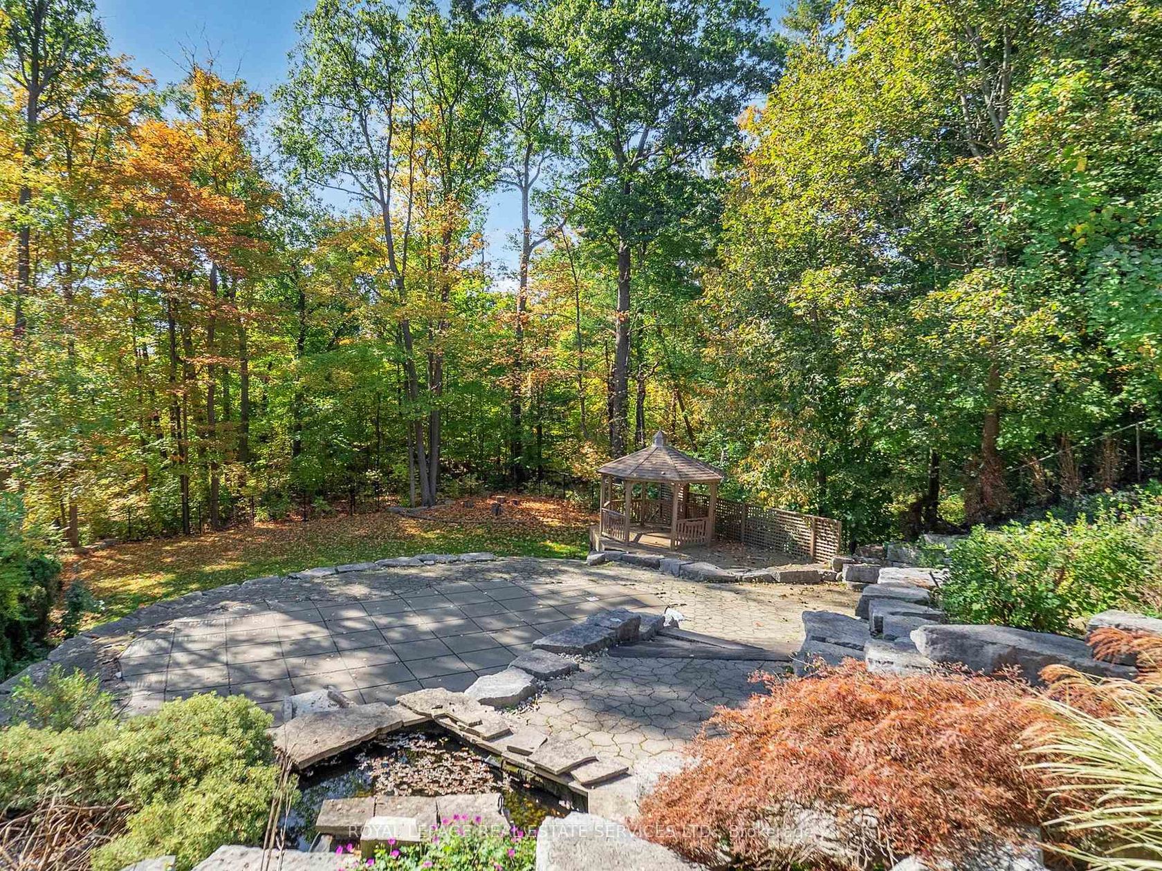 Grandly renovated 4-bedroom detached home with walkout basement on a rare 75' x 229' ravine lot in Mississauga's prestigious Credit Woodlands, featuring a saltwater pool, pond, and gazebo backing directly onto the Credit River. This luxury family home is within walking distance to 222-acre Erindale Park and the scenic Culham Trail, minutes from Mississauga Golf and Country Club, and offers quick access to major highways and GO Transit for easy commuting to Toronto and Hamilton. A mature, tree-lined street leads to a deep double driveway accommodating 8 cars plus a 2-car garage. An interlocking stone walkway and covered front veranda overlook perennial gardens with sprinkler system. The backyard is a private oasis with a massive deck, covered terrace, terraced gardens, custom saltwater pool with waterfall, serene pond with sheer descent waterfall, private gazebo, and expansive green space framed by ravine views. Recent upgrades include freshly painted interior, deck and gazebo, new furnace, air conditioner, pool heater and cover, some updated main floor windows and new backyard fencing (2025), plus a newer roof. Inside, hardwood flooring, crown mouldings, pot lighting, upgraded trims, two fireplaces, and three walkouts enhance sophistication. The skylit oak staircase opens to elegant living and dining rooms, a family room with fireplace, and a chef's kitchen with custom cabinetry, stone counters, stainless steel appliances, large island, and oversized breakfast room with walkout to deck. Upstairs, a sitting room, 2 bathrooms, and 4 spacious bedrooms are available, including a refined primary suite with a spa-like 5-piece ensuite featuring a claw-foot tub and a glass shower. The finished walkout lower level includes a recreation room with fireplace, coffered ceiling and built-ins, media/entertainment area, modern 3-piece bath, and 2 walkouts to the terrace overlooking the Credit River ravine.