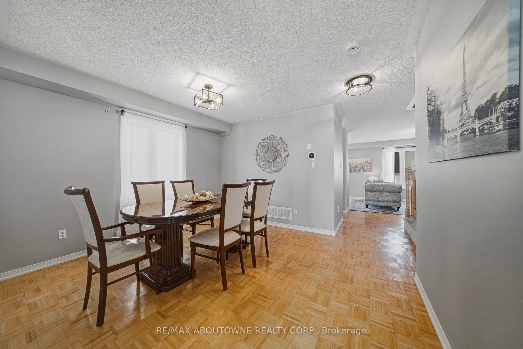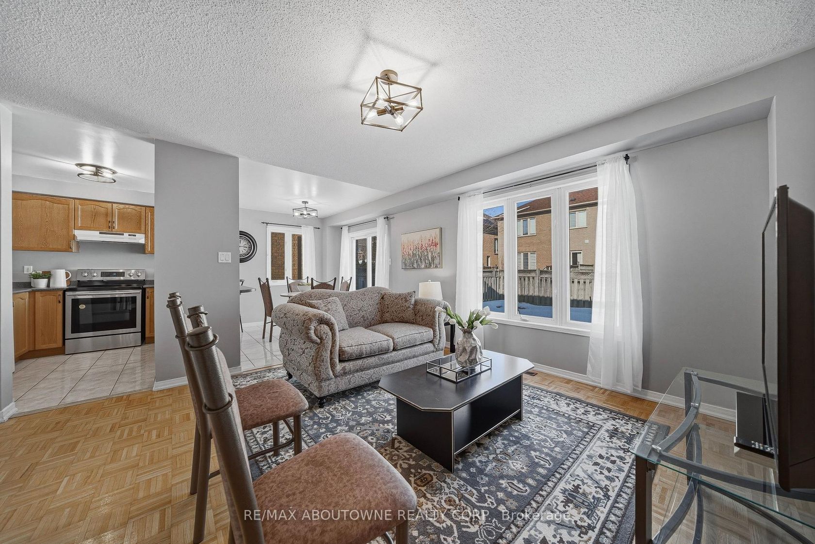 Beautiful freehold townhome in a peaceful Brampton community! This 3-bedroom, 2.5-bathroom home offers an open-concept main floor with parquet flooring, a spacious living area, and a separate dining room for hosting family and friends. The kitchen is complete with appliances, generous counter space, and plenty of storage, with a walkout through sliding doors to the fully fenced backyard. The upper level features a large primary bedroom with a 4-piece ensuite and walk in closet, plus two bright additional bedrooms filled with natural sunlight. The finished basement provides extra living space, perfect for a recreation room or guest area and a convenient laundry. Enjoy a large fenced backyard ideal for BBQs and outdoor entertaining. Parking is convenient with a 1-car garage and an extended driveway accommodating up to 3 additional vehicles. Close to schools, parks, plazas, public transit, soccer centre, hospital, recreation centre, Trinity Common Mall, and easy access to Hwy 410.