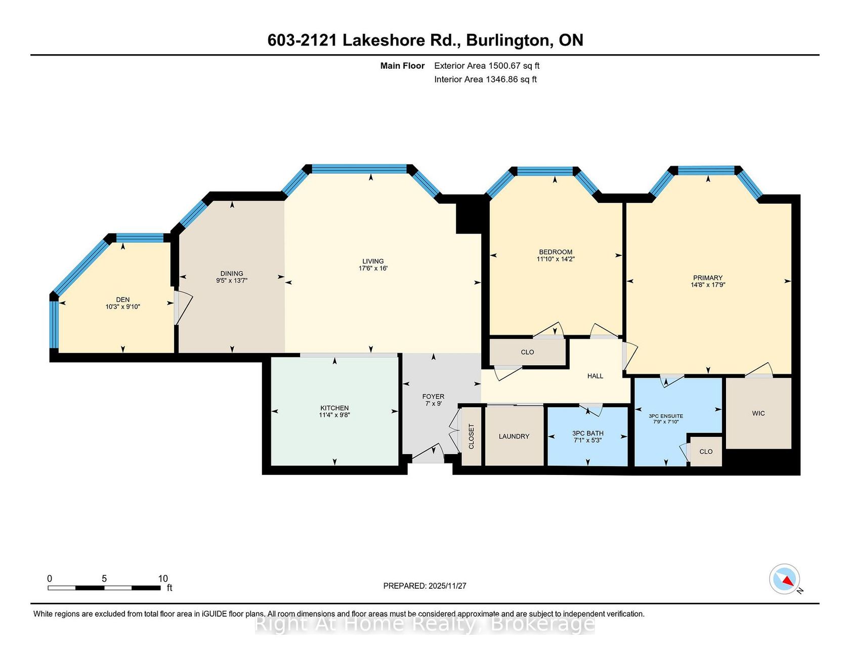 Ideally located steps from Burlington's vibrant downtown and everyday amenities-shops, restaurants, grocery, and hospital. 2121 Lakeshore Road, Burlington "Village Gate", is an exclusive 39 unit boutique condominium. A well-managed, and meticulously maintained condominium building. Welcome to Unit 603 - a Southwest Corner Suite with stunning city and lake views, oversized windows, and 9' ceilings. Great Floor Plan with well proportioned rooms. Open-concept living/dining flows to a separate den, while the custom kitchen features quartz counters, breakfast bar, and stainless steel appliances. Spacious Principal Bedroom, with walk-in closet and spa-inspired ensuite with heated floors. Second bedroom with bay window and closet, in-suite laundry, 2 parking spaces, locker. Steps to downtown shops, cafés, waterfront, arts, Hospital, Grocery, mall, GO, local transit and so much more. Welcome Home to Unit 603 - 2121 Lakeshore Road, Burlington.