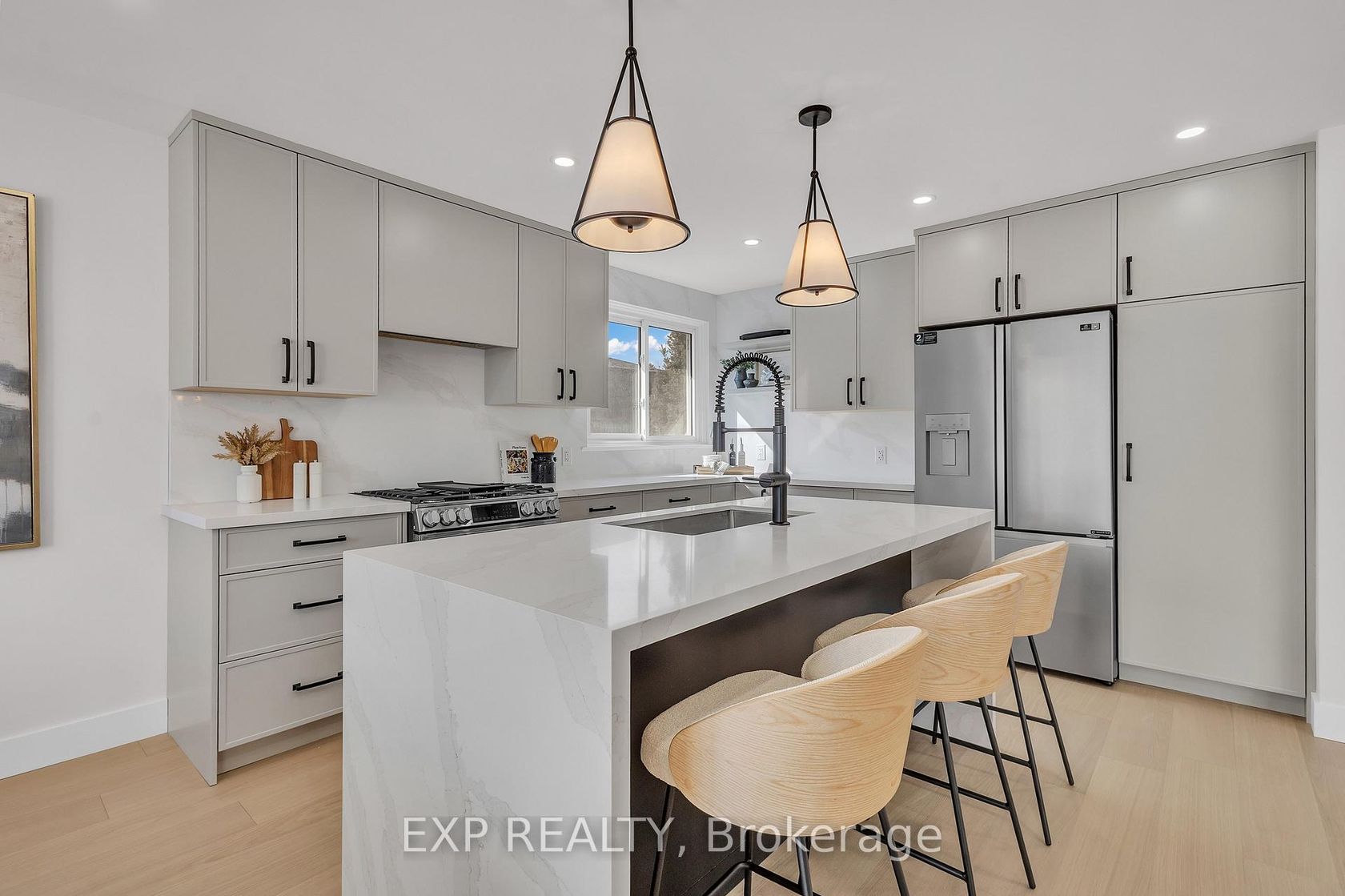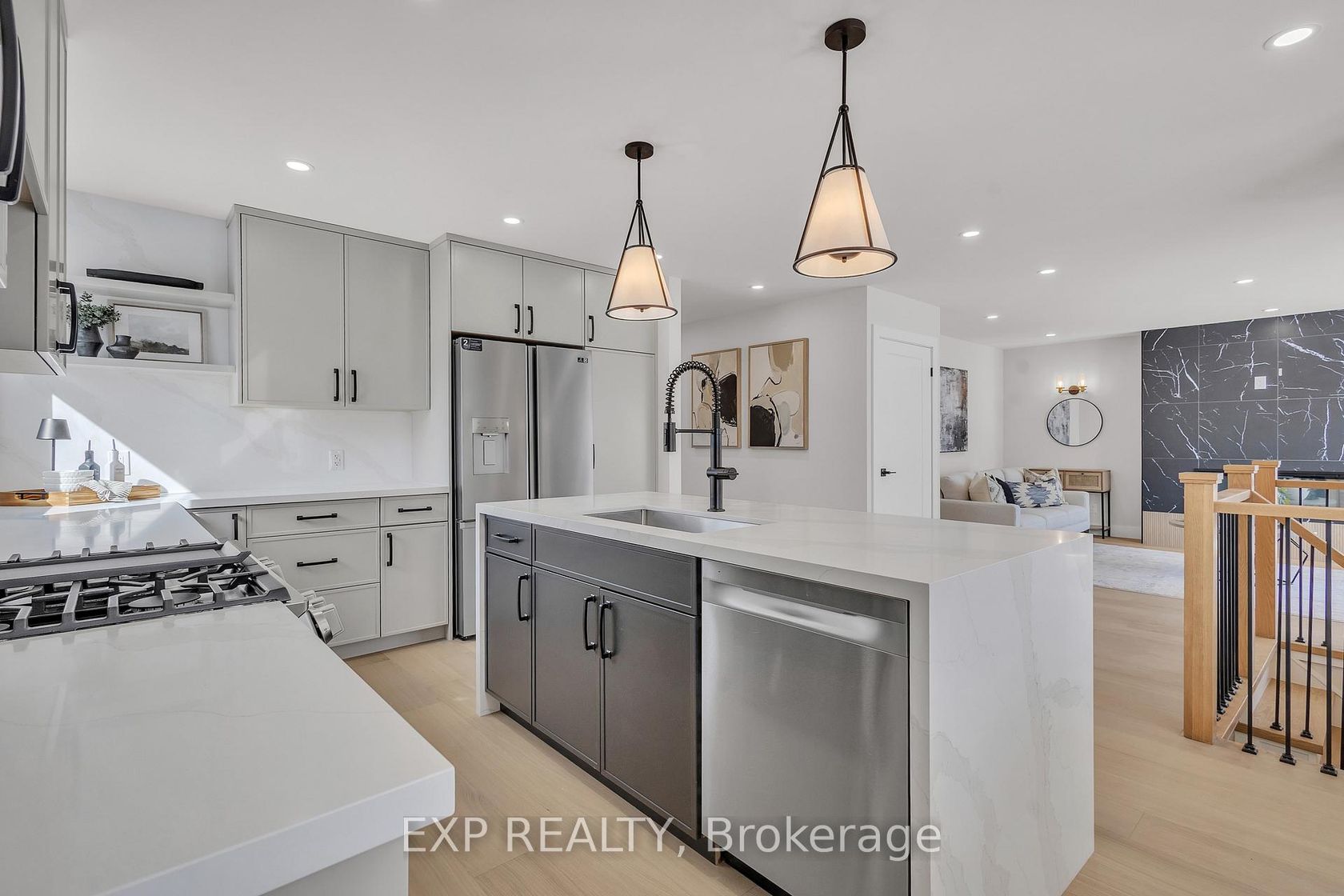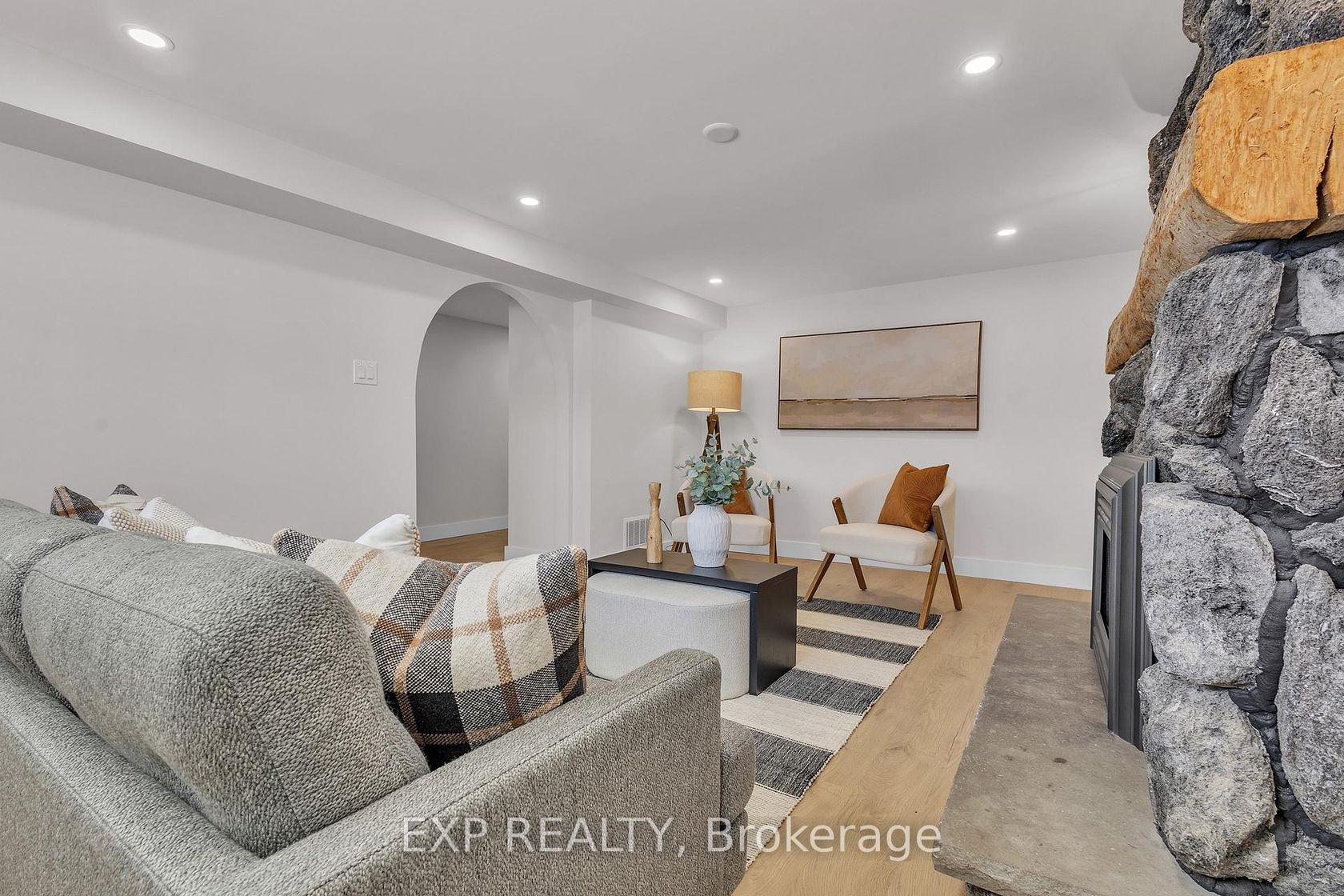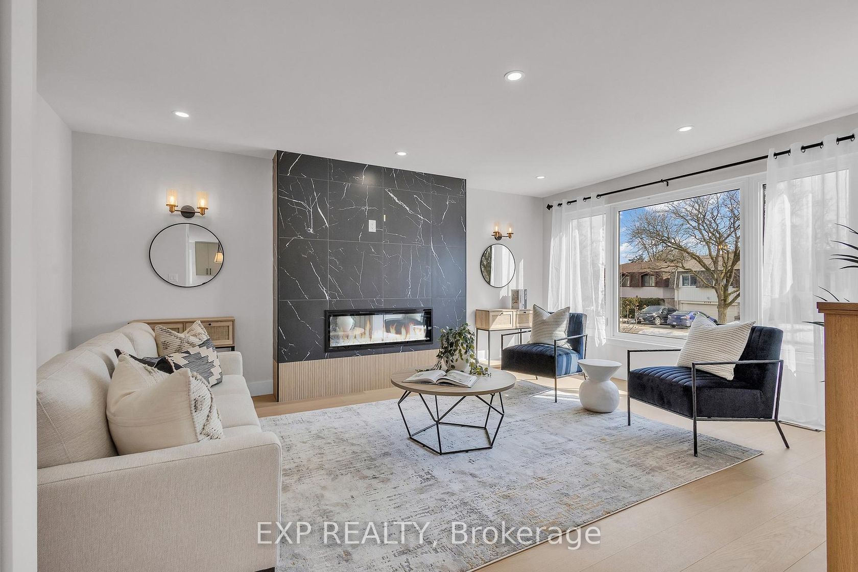 Welcome to 4185 Sutherland Crescent - a fully renovated raised bungalow in the heart of Burlington's desirable Longmoor neighbourhood. Thoughtfully redesigned from top to bottom, this 3+1 bedroom, 3-bath home offers the ideal blend of refined finishes and versatile living space. The open-concept main level is designed for connection and entertaining, anchored by a two-tone contemporary chef's kitchen featuring an oversized island, stainless steel appliances, and seamless flow into the dining area. Engineered hardwood flooring, pot lights, and curated designer finishes create a bright, cohesive aesthetic throughout. The spacious living room with a sleek electric fireplace provides a warm and inviting gathering space, while the primary suite offers a private retreat complete with a spa-inspired 3-piece ensuite and custom glass shower. A beautifully appointed 4-piece main bath showcases elevated finishes and thoughtful design. The fully finished lower level expands the home's functionality with a sunlit family room highlighted by a gas fireplace, an additional bedroom, full bathroom, and a secondary kitchen with walk-up access to the rear patio. Ideal for multi-generational living, guests, teenagers, this level adds exceptional flexibility rarely found in homes of this caliber. Outside, the landscaped backyard with interlock patio creates the perfect setting for summer entertaining, family gatherings, or quiet evenings outdoors. Situated on a quiet, tree-lined crescent near top-rated Nelson High School, parks, shopping, GO Transit, and convenient QEW access, this turnkey property delivers luxury, utility, and location - perfectly suited for families who value both style and substance.