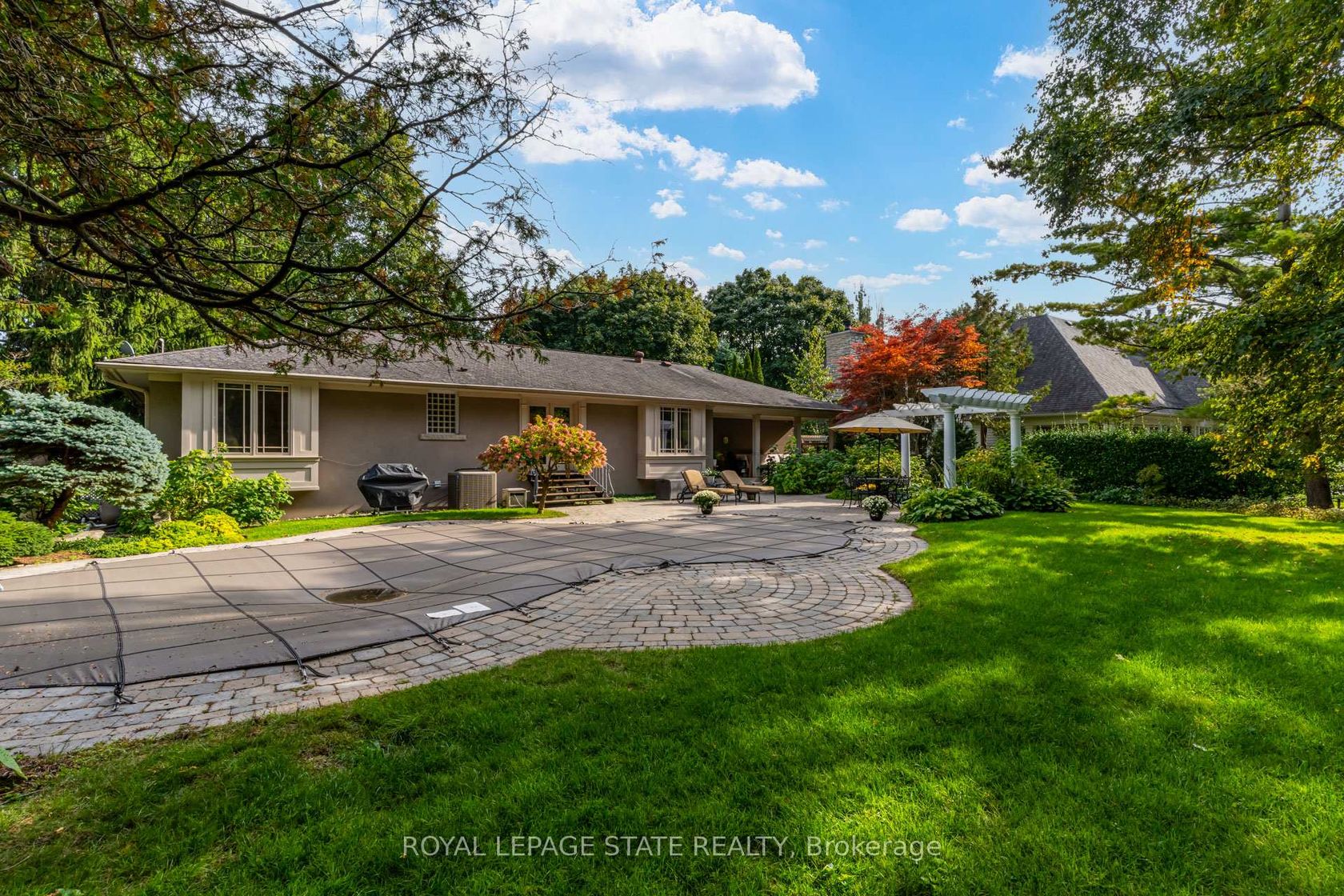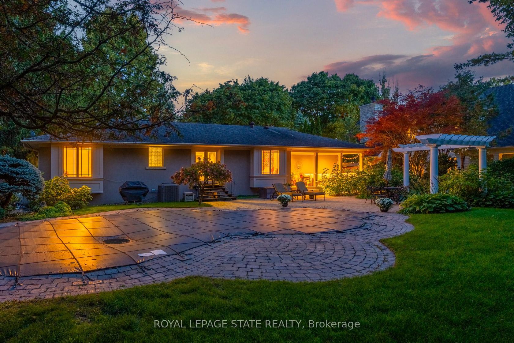 Residing on a mature, landscaped lot in Oakville with tree-lined streets creates a gorgeous setting for this lovely 3+1 bedroom bungalow where there are green views from every window. This home provides both a private, tranquil setting and great entertaining spaces. There is a covered porch off the back of the house where views of trees and greenery can be enjoyed. A large, stone patio area hosts an L-shaped pergola framing a sitting or dining area and surrounds the in-ground pool. Centrally located within highly desirable, prestigious Eastlake community of southeast Oakville, this location makes it ideal for accessing both the lake and the area's top amenities and schools. The large, gourmet kitchen has an island breakfast bar and a large window with a view of a Japanese Maple tree. Three bay windows offer a warm, inviting ambience; two in bedrooms and one in the dining room. The basement has in-law suite potential as there is a storage area under the kitchen that sides onto the bathroom, and there is separate entrance potential. Situated close to the town's most valuable amenities, there is top-tier education, lakeside leisure with green spaces and close proximity to the waterfront including Gairloch Gardens and scenic Lake Ontario trails. For convenience and community, enjoy a short drive to vibrant shops, gourmet restaurants, and cultural attractions of historic downtown Oakville. Maple Grove Village offers excellent shopping and services. Come and see all that this area and home have to offer!