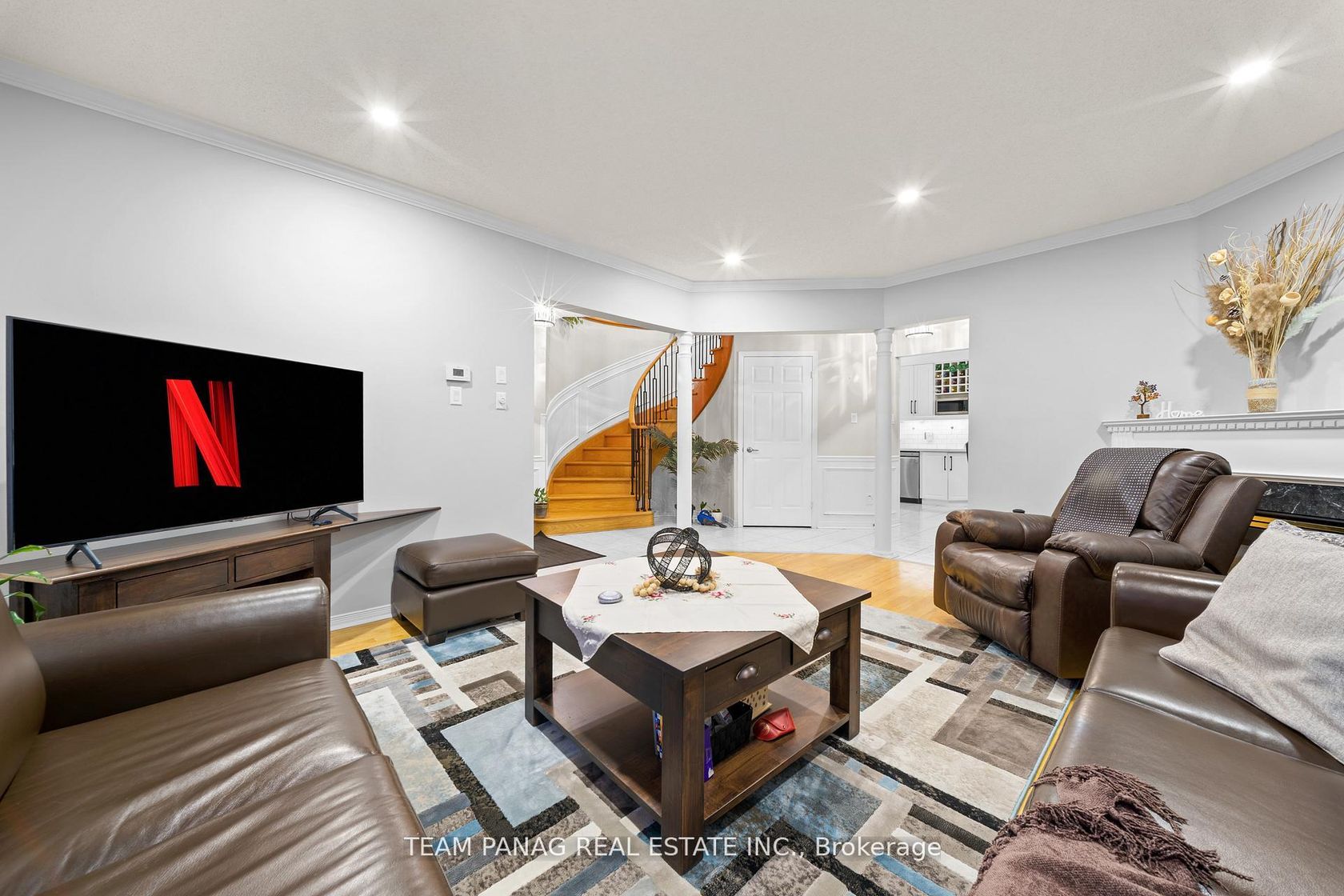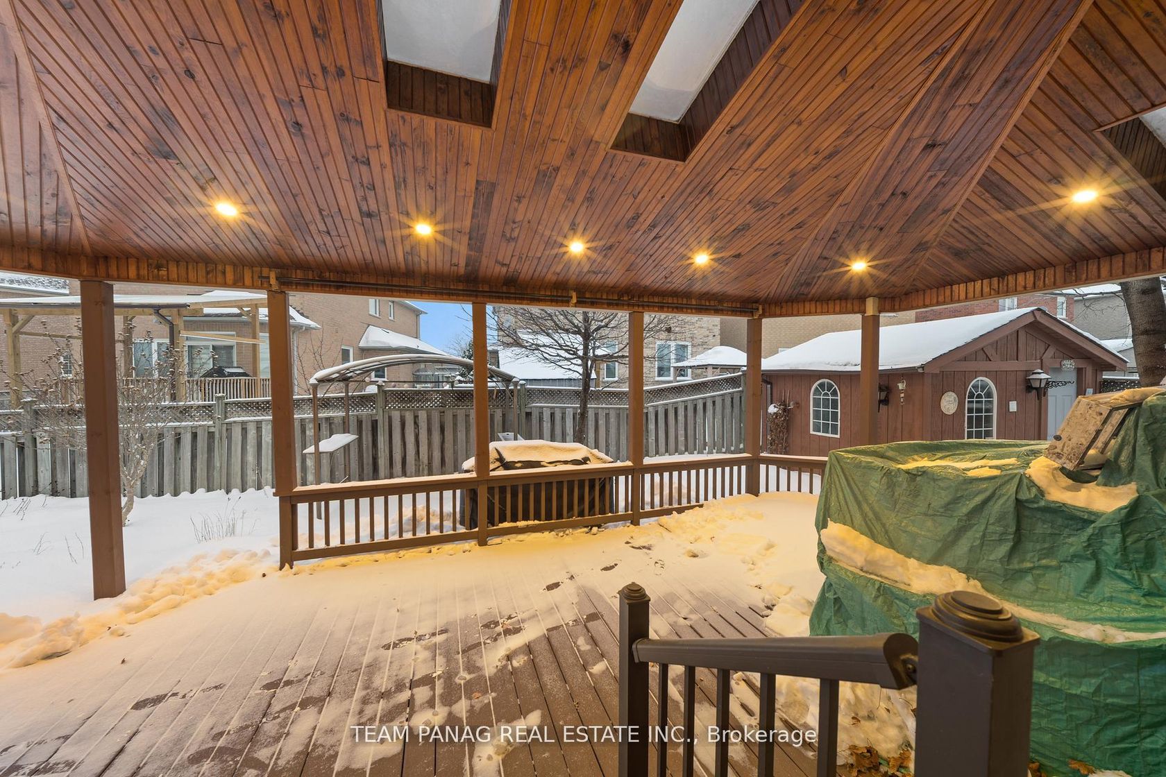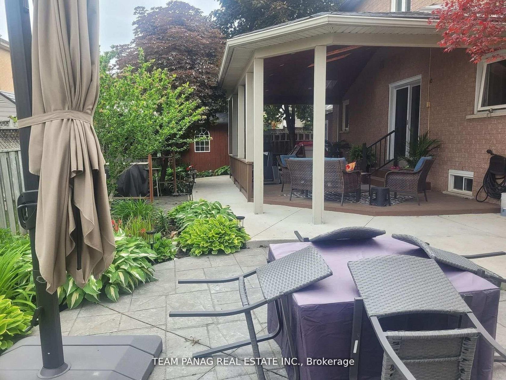 Welcome to this BEAUTIFULLY MAINTAINED residence offering thoughtfully designed living space. Blending privacy, comfort, and style - this exceptional home is nestled on a quiet lot. Features a concrete stamped driveway with up to ** 6 CAR PARKING ** (2 Garage, 4 Driveway) . Step inside to a striking entrance welcomed by an elegant statement chandelier. Pot lights throughout the entire home, including the basement. The main level showcases elegant flooring, a sleek gas fireplace, and a stylish powder washroom, ideal for everyday living and entertaining. Staircases accented with iron pickets add timeless character and durability, complementing both modern and traditional design. The chef-inspired eat-in kitchen impresses with a coffered ceiling, beautiful tile backsplash, countertops, and custom cabinetry. Premium features include a built-in stainless steel refrigerator, gas cooktop, built-in wine rack, and California shutter blinds. The kitchen walks out to an open wooden patio/solarium, flooded with natural light offering panoramic seasonal views. The main-floor laundry room includes a washer ,dryer, separate laundry sink, and built-in storage. Upstairs, the spacious primary bedroom offers a walk-in closet and spa-inspired ensuite with a standing glass shower. Additional bedrooms are generously sized. The private backyard is surrounded by trees and features a stunning open-concept patio with wooden beams, pot lights, and a warm, cozy ambiance. The fully finished basement includes pot lights throughout and a dedicated kitchen, ideal for extended family or separate entertaining. Major updates include roof, windows, exterior doors, air conditioning, and furnace, all replaced within the past five years. Kitchen appliances are also less than five years old. Freshly painted, this move-in-ready home is minutes from Hwy 410,Trinity Common Mall, parks, and top-rated schools-offering space, elegance, and lasting value in one of Brampton's most sought-after neighborhoods.