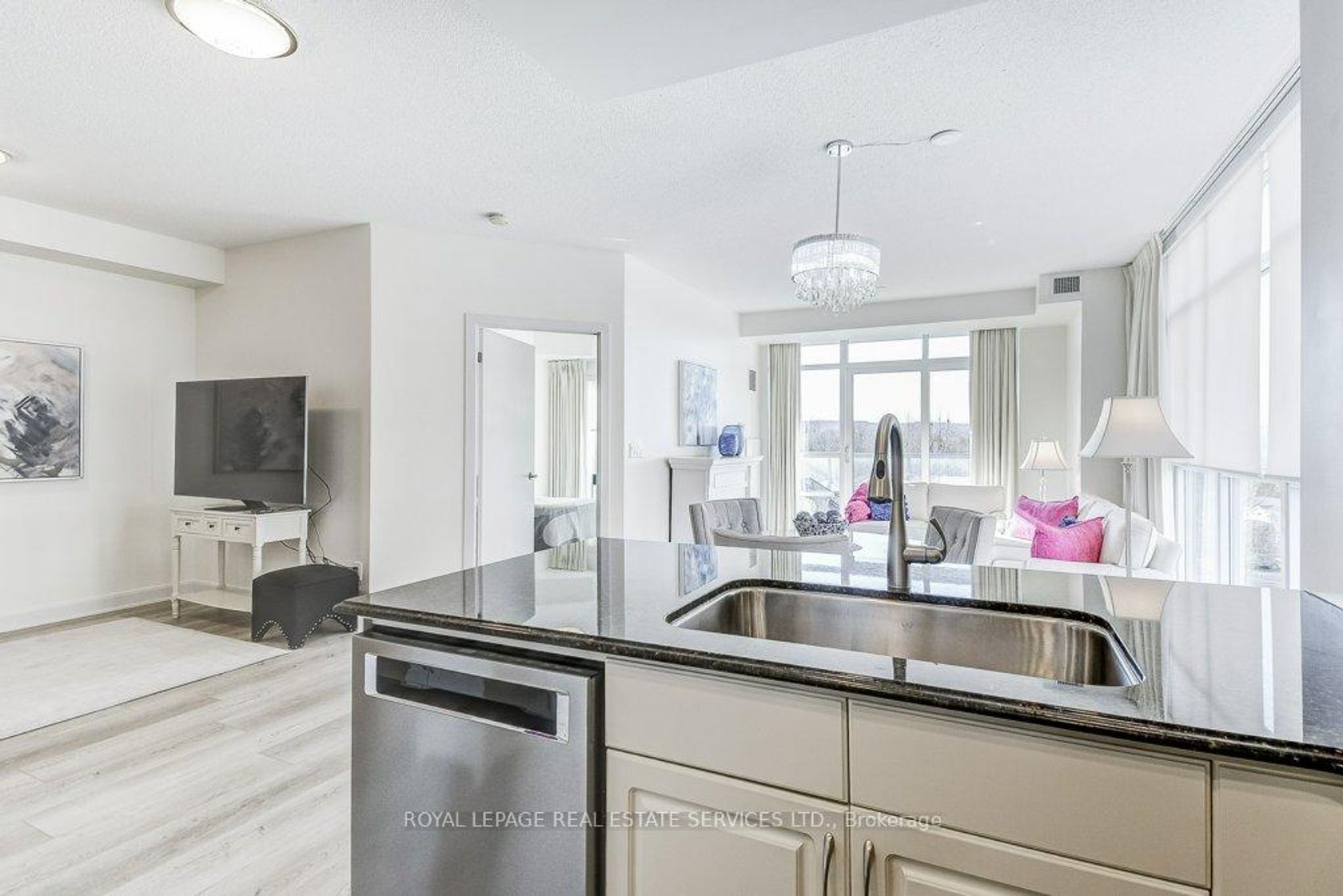 Welcome to Suite 610 at 551 Maple Avenue a beautifully appointed 2-bedroom, 2-bathroom condo with a versatile den, offering both comfort and thoughtful upgrades throughout.This bright and spacious unit features beautiful, light, wide plank, durable waterproof flooring, providing both style and peace of mind. The well-designed layout includes a living and dining area, perfect for relaxing or entertaining, while the den offers flexible space ideal for a home office or reading nook.The kitchen has cream cabinetry, tiled backsplash, stainless steel appliances and breakfast bar area.The primary and secondary bedrooms are enhanced with custom California closets, maximizing storage and organization. The second bedroom also includes a built-in wall unit, adding both functionality and charm. In the bathrooms, you'll find added safety and convenience with installed handrails, as well as extended cabinetry that reaches the ceiling for extra storage.The kitchen and laundry areas are equipped with modern safeguards, including flood alert systems for both the dishwasher and laundry. A large-capacity washer and dryer further enhance everyday convenience.Additional features include one underground parking space (A6) and a dedicated locker (Level 2, #52), providing ample storage solutions.Residents at "Strata" enjoy an impressive selection of amenities, including an indoor pool, concierge service, rooftop terrace, guest suite, fully equipped fitness centre, party/meeting room, billiards table, and ample visitor parking. This thoughtfully upgraded condo offers a perfect blend of practicality, comfort, and modern living, ideal for those seeking a move-in-ready home in a desirable location.