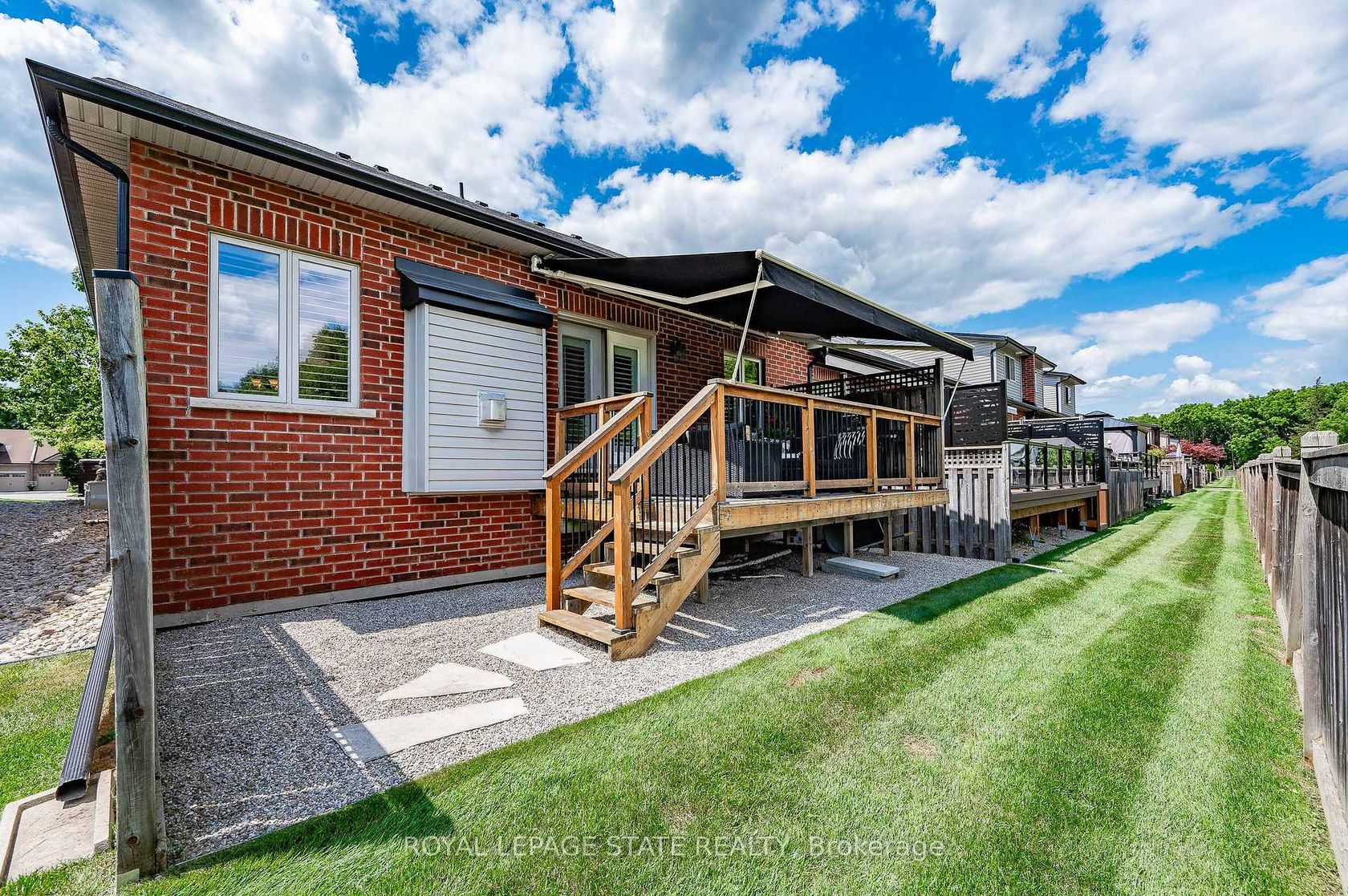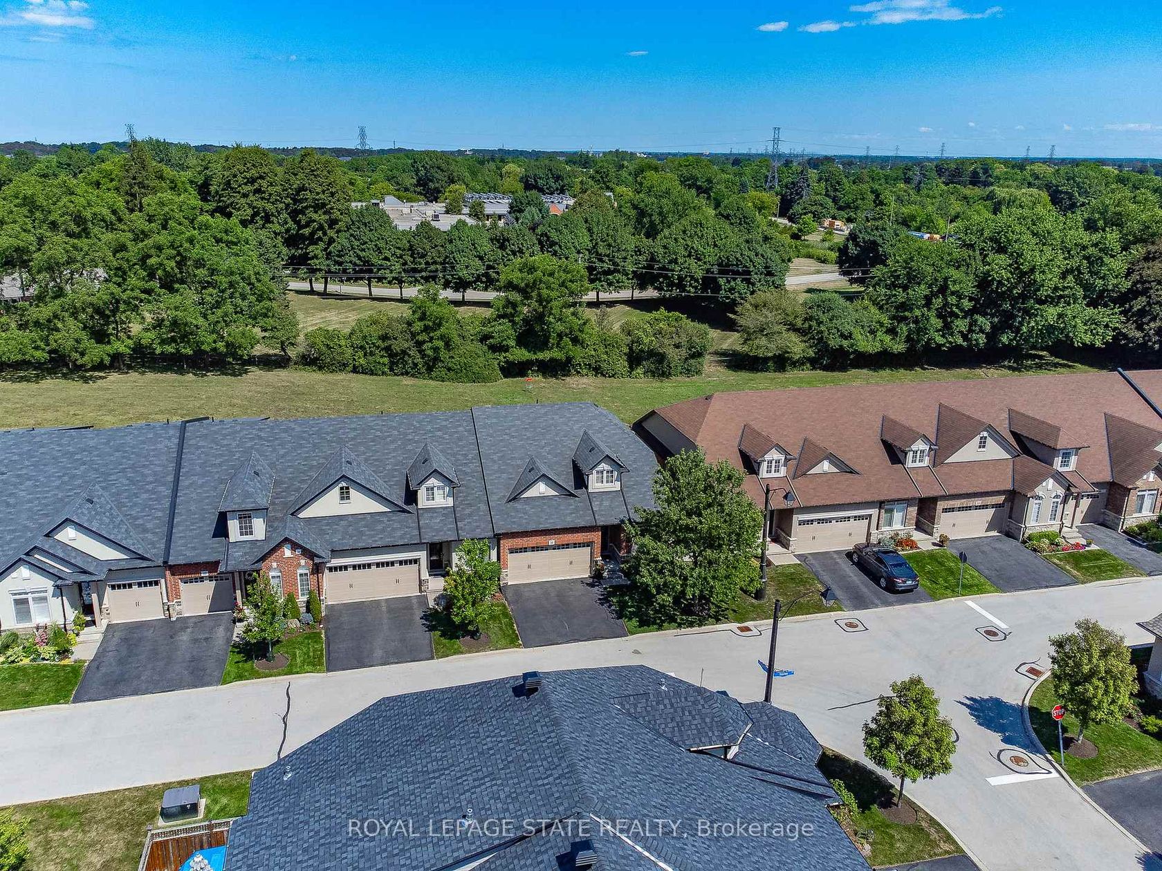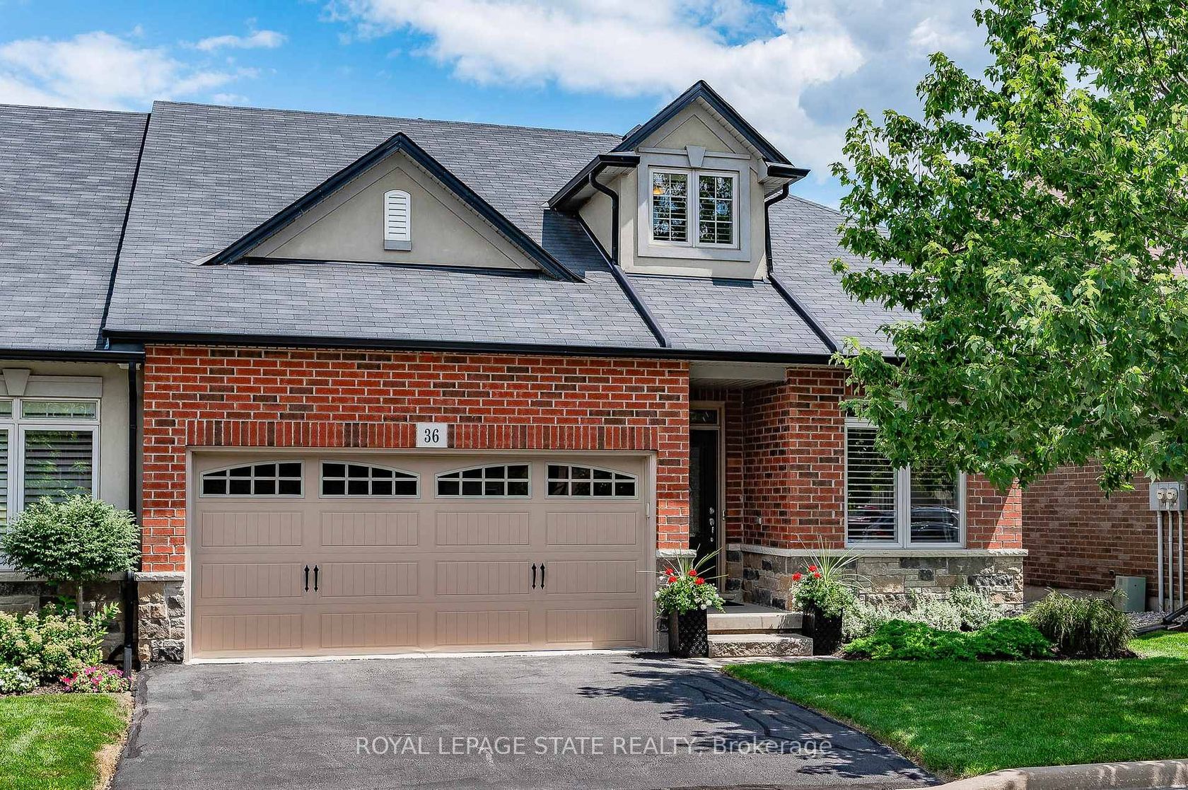 Welcome to The Bungalows of Ancaster South - an exclusive enclave of executive homes tucked away in one of Ancasters most desirable locations. Built by Starward Homes in '12, this immaculate end-unit bungaloft offers 1993 sq ft (above grade), 2 bdrms, 2.5 baths, & the rare advantage of no immediate rear neighbours. A stone entrance & private drive off the main road lead into this meticulously maintained community. The homes striking facade of red brick, stone, & stucco is complemented by a 2 car grg w/ inside entry & 2 add surface parking spots. Step inside through the elegant front door w/ a transom window into a foyer that sets the tone for the rest of the home. The form din rm w/ crown moulding offers the perfect space for entertaining. The open-concept main lvl feat a bright kitch w/ timeless white cabinetry (including bonus dark pantry cabinetry), granite countertops, S/S app, undermount lighting, & breakfast bar seating for 3+. A dinette sits off to the side, framed by circular columns. The liv rm impresses w/ vaulted ceil, a gas FP w/ a cast stone surround & associated mantel, and French drs leading to an oversized raised deck - complete w/ Sunbrella awning for added shade. The main lvl primary bdrm incl crown moulding, a 4-pc spa-like ensuite w/ corner glass shower, soaker tub, granite vanity, & walk-in closet. The main-lvl laund & powder rm add convenience. Upstairs, the loft space overlooks the liv rm & is perfect as a home office, den, or other multi-purpose space. A lrg 2nd bdrm w/ a bonus reading nook & a 3-pc bath completes the upper lvl. Add feat: hrdwd flrs, Cali shutters, rounded drywall corners, elegant lighting, fresh paint, c-vac, updated furn & c-air (21), & an unspoiled bsmt w/ 2 oversized windows & a bath rough-in. Enjoy turn-key living w/ fees incl building insur, ext maint, parking, & access to common elements. Min to parks, shopping, restaurants, golf, highways, & top schools, this home offers upscale living w/ unbeatable amen.