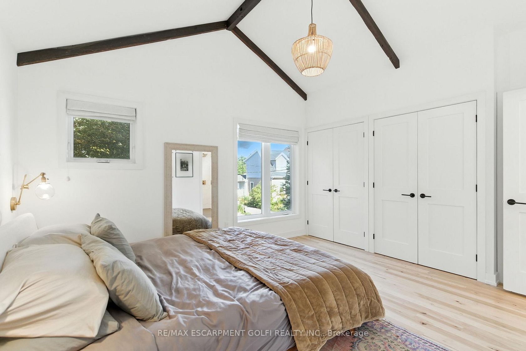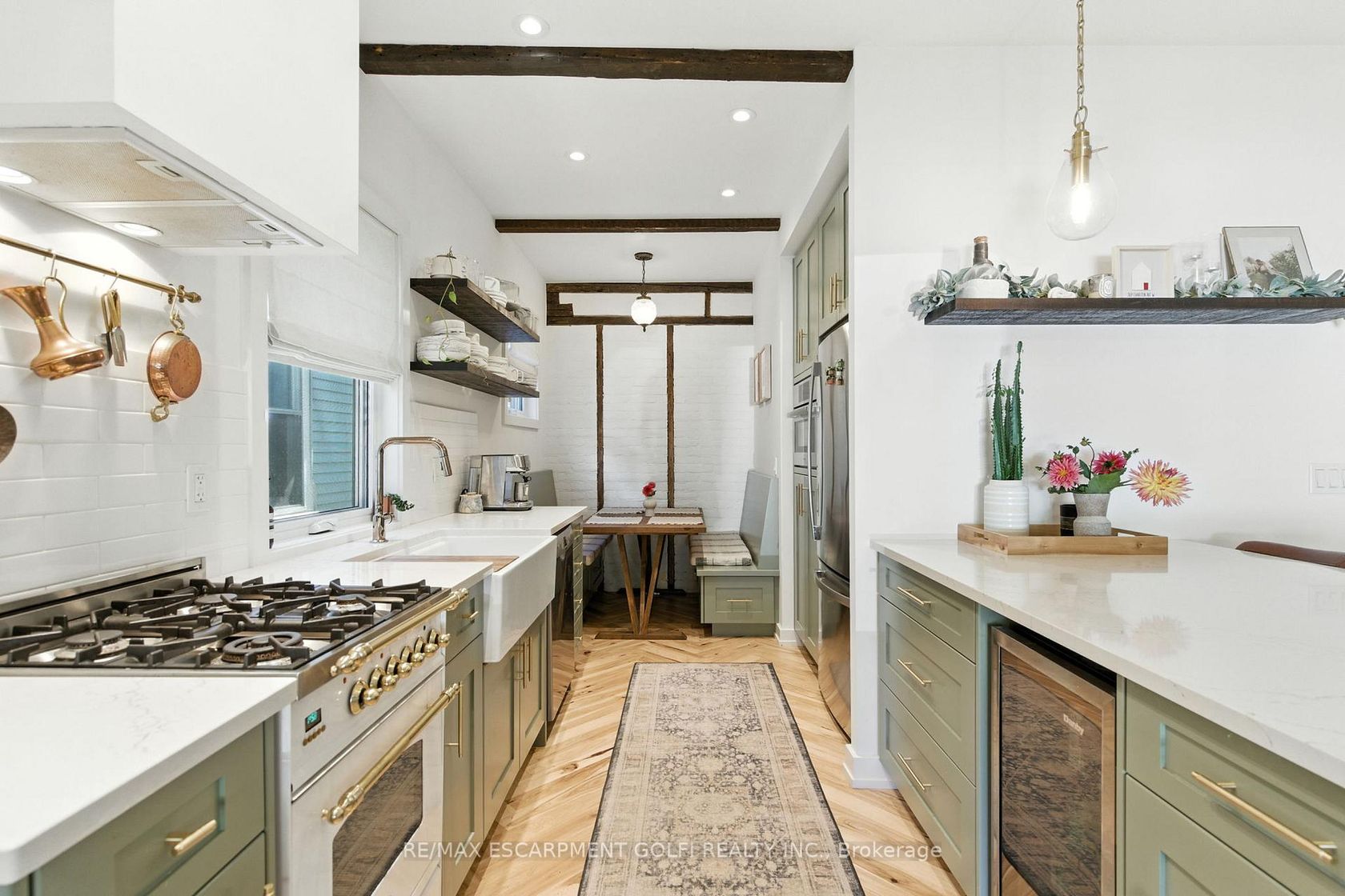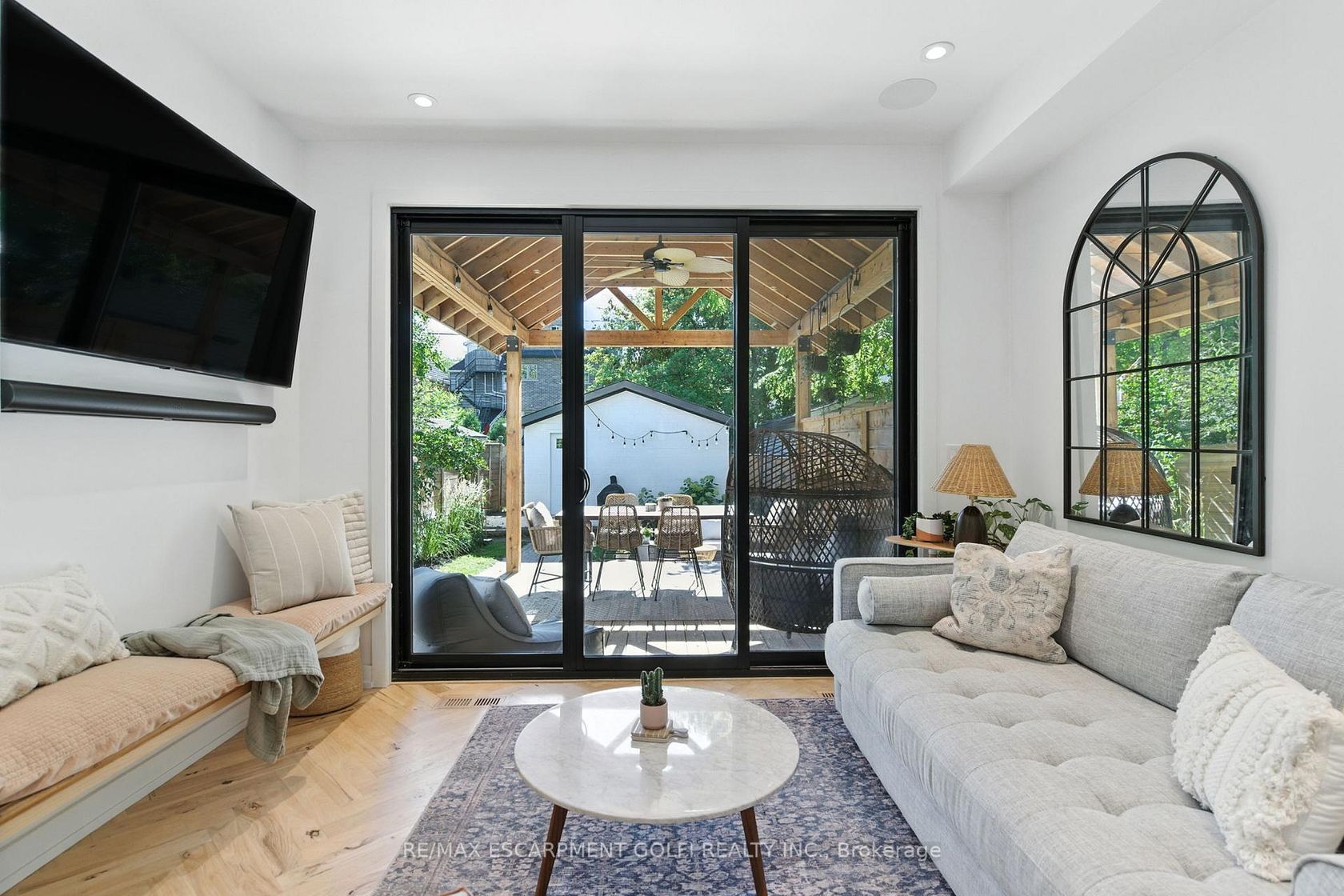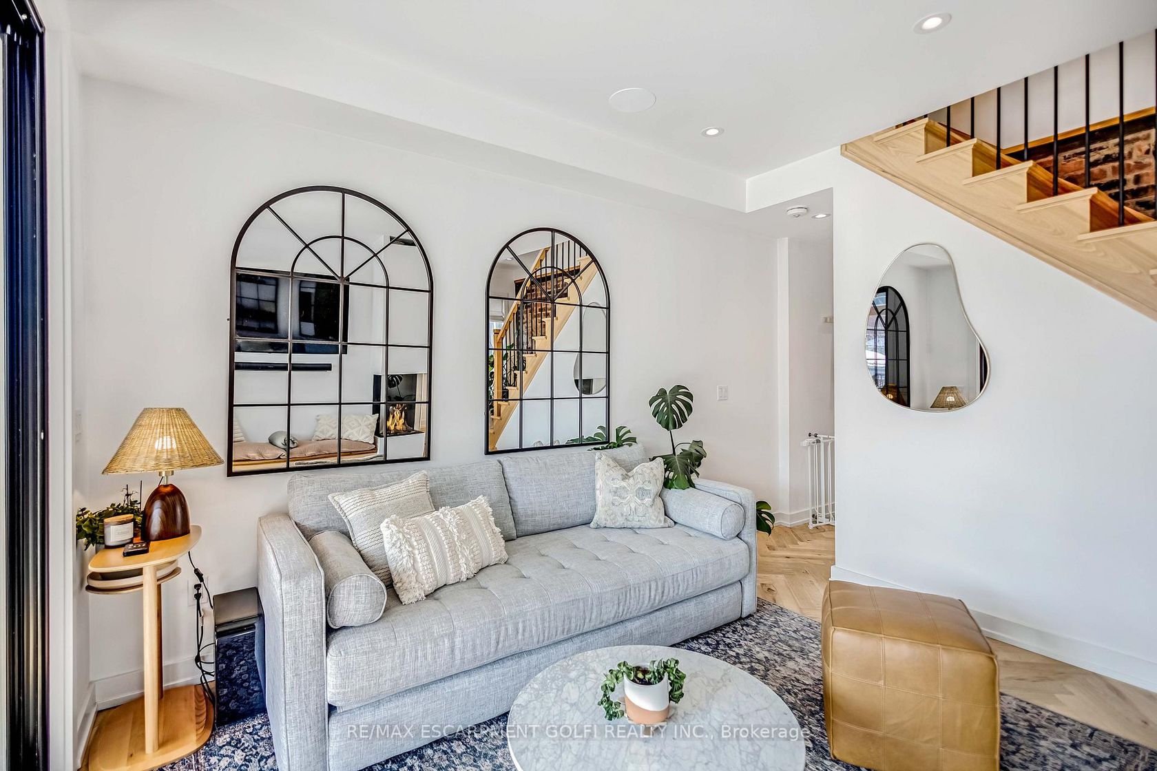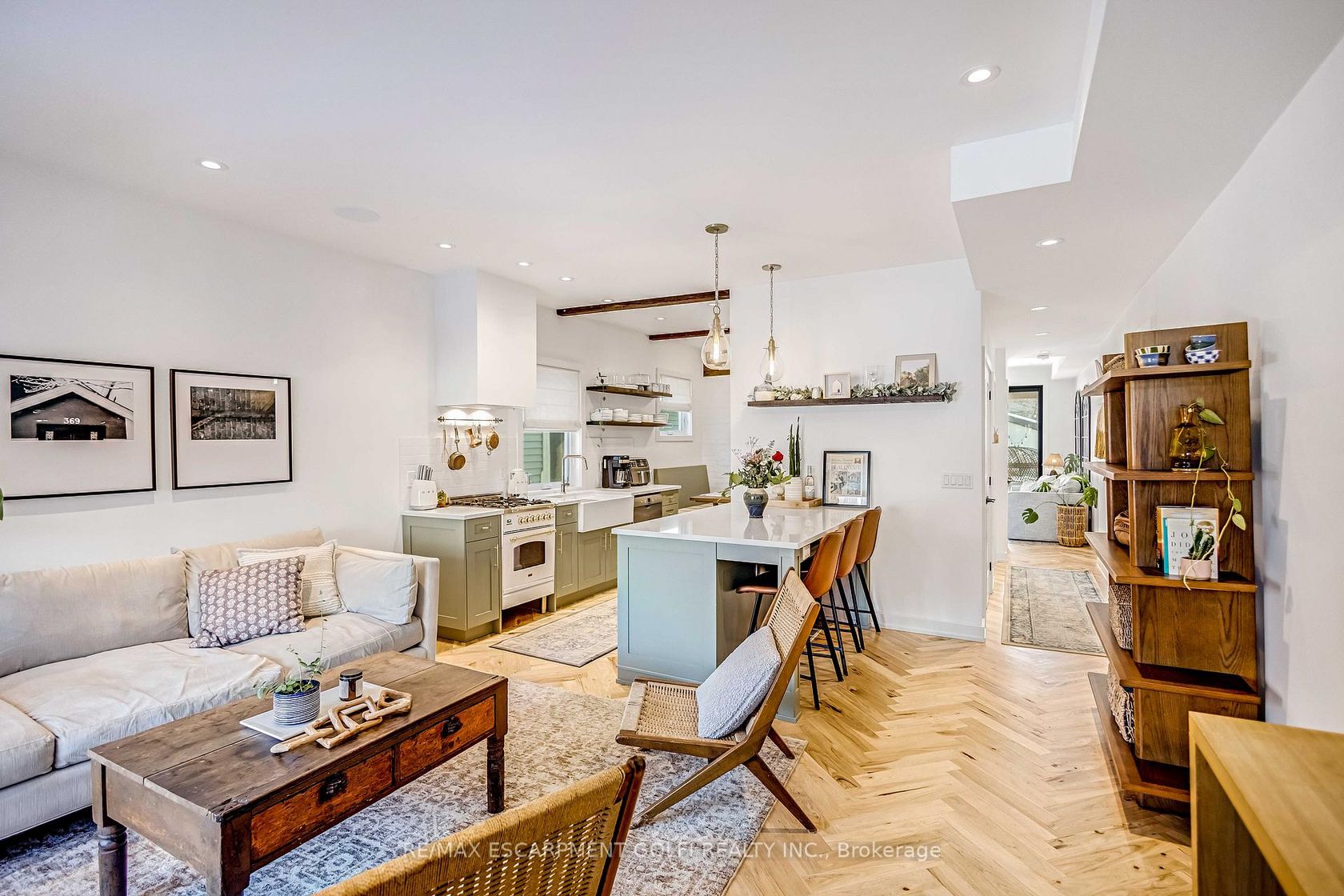 Welcome to 369 Charlton Avenue West - a rare opportunity in Hamilton's coveted Kirkendall neighbourhood. Completely rebuilt from the foundation up in 2021 by Dollak and Sons Construction, this detached home combines modern construction with timeless character. Steps from Locke Street's boutiques, restaurants, cafés, parks, and transit, it offers both elevated living and everyday convenience. Featured in design magazines, the interior reflects a curated "California Cool" aesthetic with Scandinavian, bohemian, and mid-century influences. Character-grade hickory laid in a herringbone pattern, exposed brick, reclaimed beams, and Hudson Valley lighting highlight exceptional craftsmanship. The primary suite is a retreat with vaulted ceilings, exposed beams, and a heated ensuite. Bathrooms evoke spa-like relaxation with floating vanities, detailed tilework, and a curbless shower, while the powder room impresses with a handmade Calacatta Viola sink imported from Tuscany. The kitchen showcases custom cabinetry, farmhouse sink, and Brizo hardware, seamlessly integrated with the front living room. A second living area invites cozy evenings beside the Bellfires fireplace. The expansive sliders open to a landscaped backyard retreat with covered porch, stone patio, and fenced privacy. At the rear, a detached garage with alleyway access, and EV-ready power adds convenience and the ability to convert to home office or studio. More than a home, 369 Charlton delivers elevated living in one of Hamilton's most desirable communities.